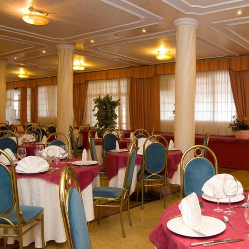 La Sala "La Pineta", con una capienza massima di 400 posti, si affaccia sulla pineta dell'albergo. Caratterizzata da colonne rosa e pregiati stucchi, regala un'atmosfera elegante e raffinata, e offre un servizio attento e curato nei dettagli.