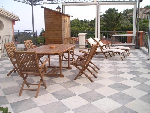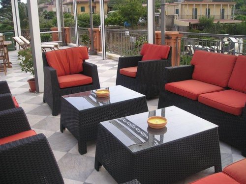 Le camere doppie e gli appartamenti dispongono di un terrazzo privato e panoramico con vista sul mare, attrezzato con tavolino e sedie a sdraio.