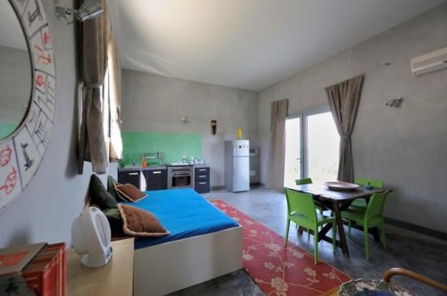 Il Bilocale dispone di un'ampia camera da letto (un letto matrimoniale e un letto ad una piazza e mezza) ed ha una zona relax di 80mq con vista sugli ulivi.