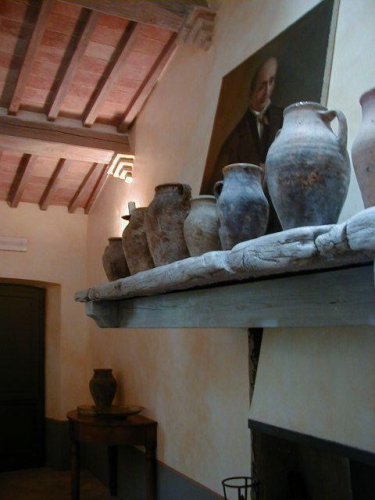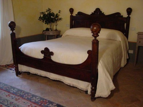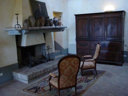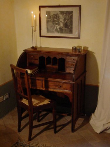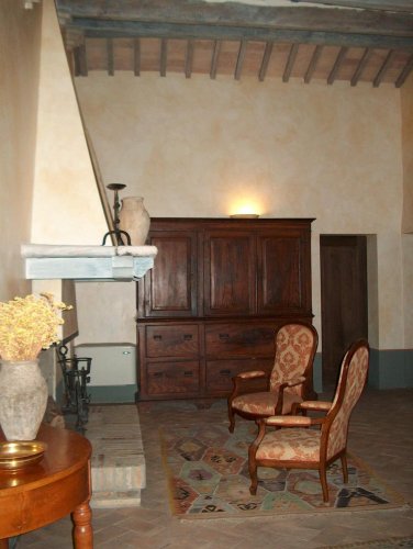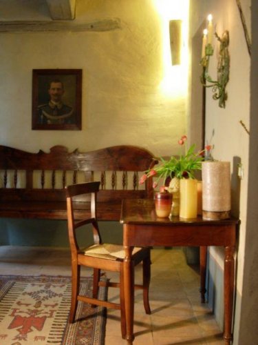L'atmosfera creata dai mobili d'epoca e dagli antichi kilim si coniuga con la funzionalità del comfort, ricreando l'ambiente di una elegante villa di campagna.