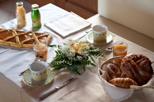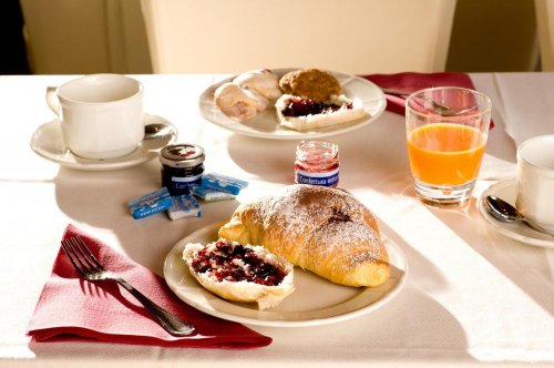 La colazione, tipica Mediterranea viene servita a buffet dalle 8:30 alle 10:30 e comprende: latte, tè, cioccolata, caffè macinato direttamente dai grani, brioche e dolci assortiti, panini freschi, burro, miele, nutella, cereali, marmellatine in vetro, yogurt, succhi di frutta, affettati e formaggi tipici di Norcia.