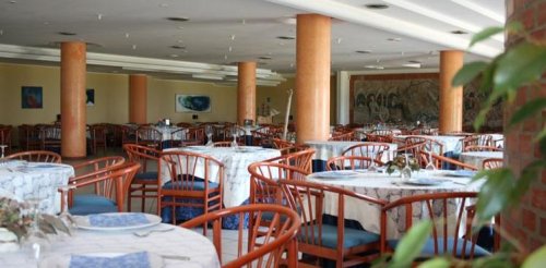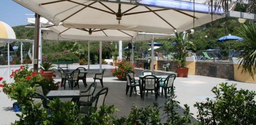 Il piccolo ristorante (aperto solo nel periodo estivo) con circa 40 posti si trova al lato della piscina su di un terrazzo panoramico.