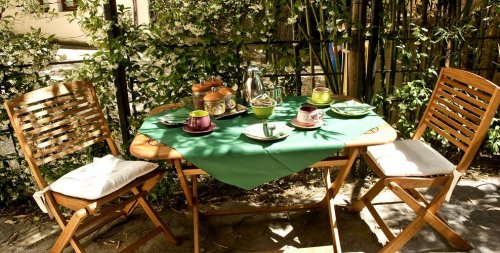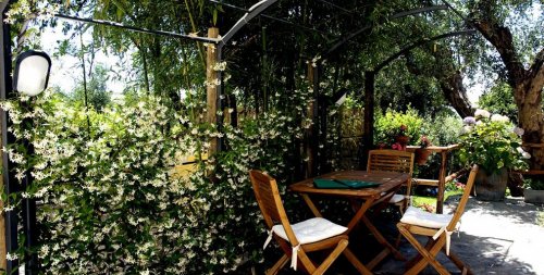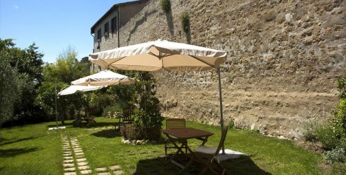 Il grazioso giardino esterno offre una piacevole cornice per il riposo sotto le antiche mura del '300, o per le passeggiate durante la bella stagione.