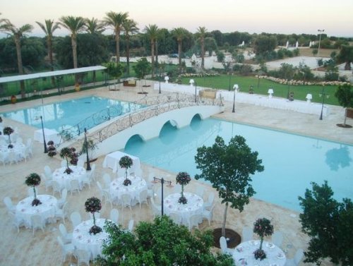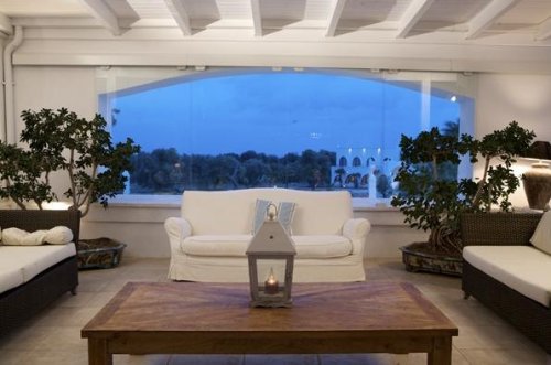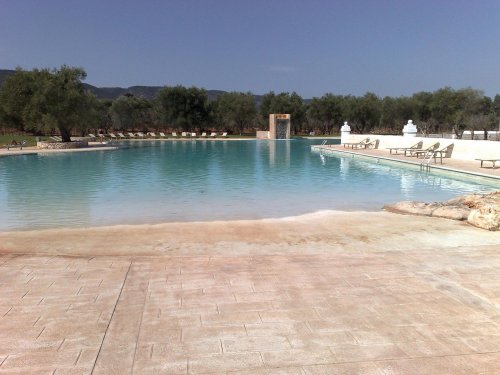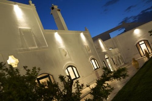Realizzata con pietra di tufo locale è immersa nel verde di una tenuta di 60 ettari fra gli ulivi secolari, incastonata tra le colline della Selva di Fasano, della Valle d’Itria e del mare cristallino della costa pugliese.