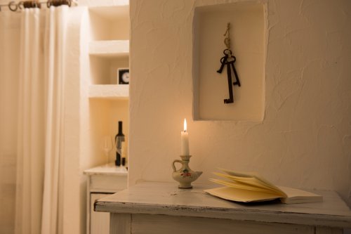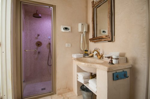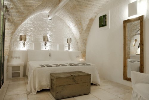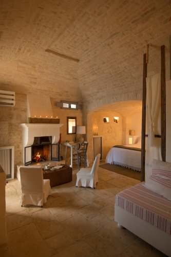 La struttura consiste in un'antica masseria settecentesca usata in passato come deposito di sale e sapientemente ristrutturata in tipico stile locale con interni in pietra e calce bianca.