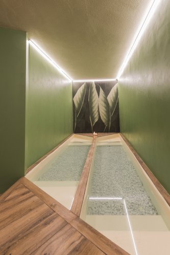 Immersa in un ampio e curato giardino, la nuova struttura è stata realizzata con eleganti marmi, cementine artigianali e legno che infonde calore a tutto l'ambiente.