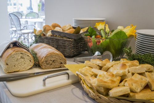 La prima colazione viene servita all'interno del luminoso giardino d'inverno e preparata con prodotti freschissimi della grande tradizione pasticcera italiana.