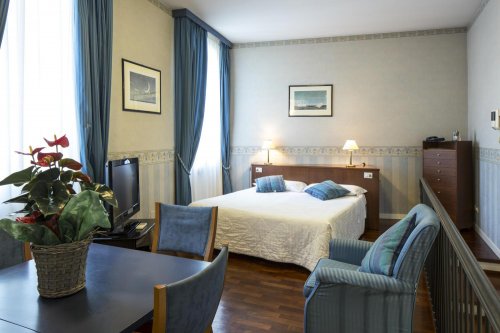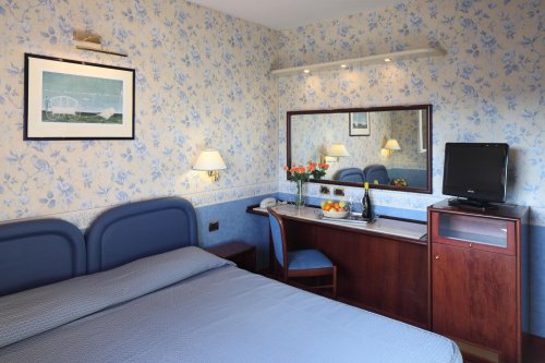 - Camere doppie Superior recentemente rinnovate, dotate di comodi letti Queen Size, TV color satellitare, impianto di climatizzazione autonomo, minibar, bollitore, cassetta di sicurezza, ampio bagno con doccia, asciugacapelli.