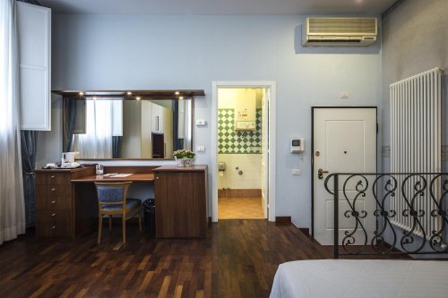 - Camere doppie Deluxe elegantemente arredate e dotate di pavimenti in parquet, comodi letti Queen Size, TV color satellitare, impianto di climatizzazione autonomo, angolo cottura attrezzato per lunghi soggiorni, minibar, bollitore, cassetta di sicurezza, ampio bagno con doccia, asciugacapelli.