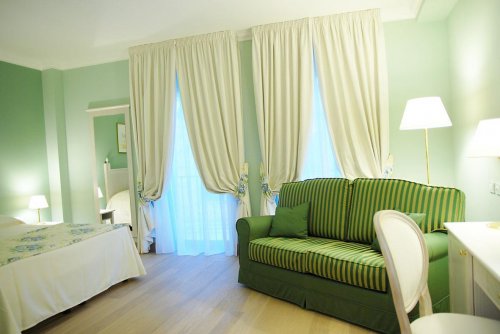 Le 34 camere, raffinate ed elegantemente rifinite in ogni dettaglio, sono tutte dotate di aria condizionata, TV color satellitare, frigobar, cassetta di sicurezza, connessione Wi-Fi a Internet, telefono con linea diretta, bagno privato con doccia e/o vasca.