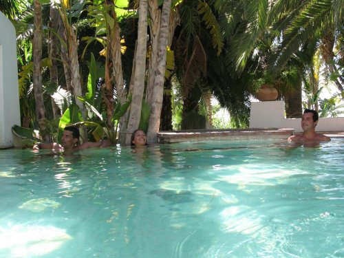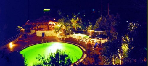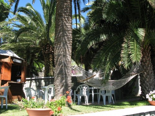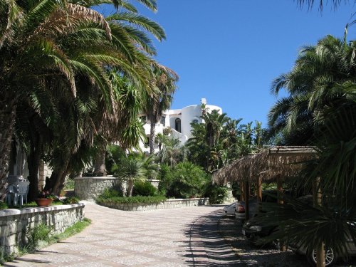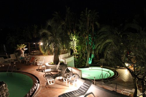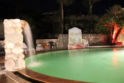 Attorniato dal verde di un meraviglioso giardino ricco di fiori, di piante esotiche e tropicali, è dotato di sauna naturale (bagno turco) e di due splendide piscine termali, una con idromassaggio che nei mesi freddi è comodamente accessibile dall'adiacente sala riscaldata.