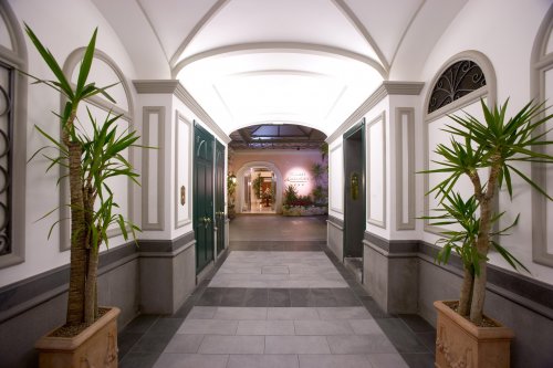 L’ingresso privato, situato a 50 mt da Piazza Dei Martiri, conduce alla caratteristica Hall ovale ricca di marmi e stucchi.
