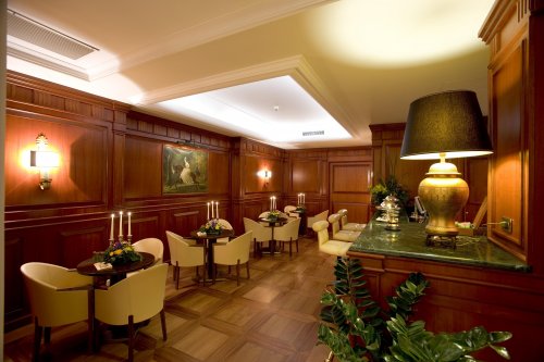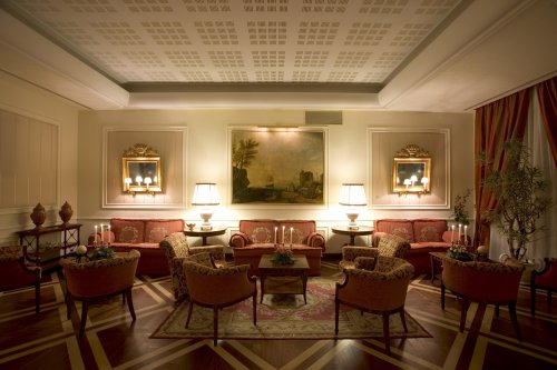 L'elegante Hall Ovale accoglie gli ospiti in un'atmosfera suggestiva e offre sulla destra un American Bar.