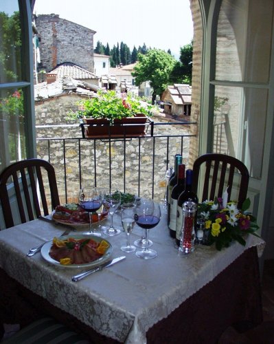 Palazzo Leopoldo è dotato di una bellissima terrazza che si affaccia sulle colline del Chianti dove durante la bella stagione viene servita la colazione agli ospiti.