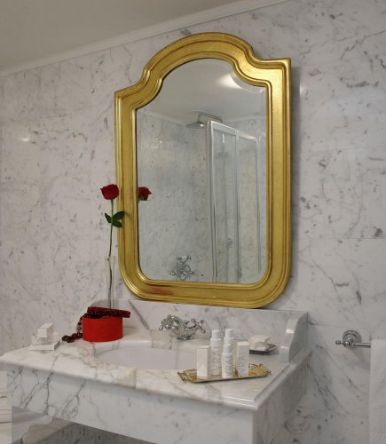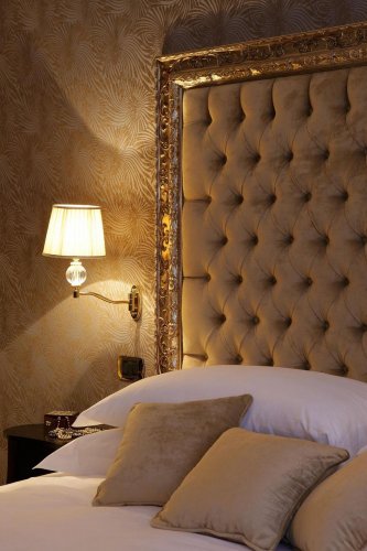 Junior Suites: eleganti e spaziose, con stucchi originali, impreziosite da raffinati velluti e broccati, camere con arredi in radica e letti king size con testiera dorata in foglia d’oro intarsiata a mano.