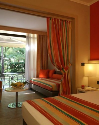 Tutte sono arredate in stile moderno e raffinato, dotate di terrazza privata o giardino, TV color satellitare LCD, frigobar, aria condizionata, connessione a Internet, cassetta di sicurezza, bagno privato.