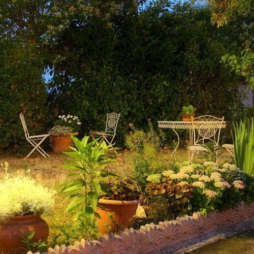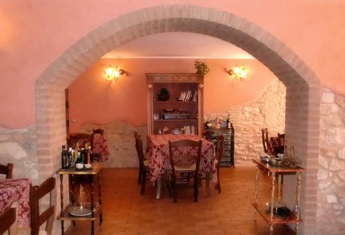 Possibilità di gustare l'ottima cucina all’aperto, nel patio, o in giardino, in un’atmosfera romantica e circondati dal silenzio della natura.