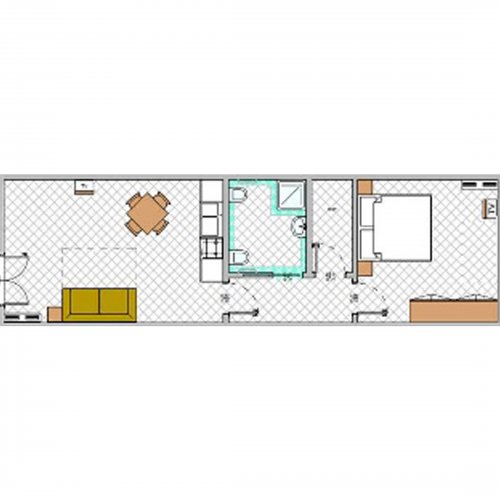 Il Monolocale Superior per 2 Persone è composto da soggiorno cucina con divano letto matrimoniale e può