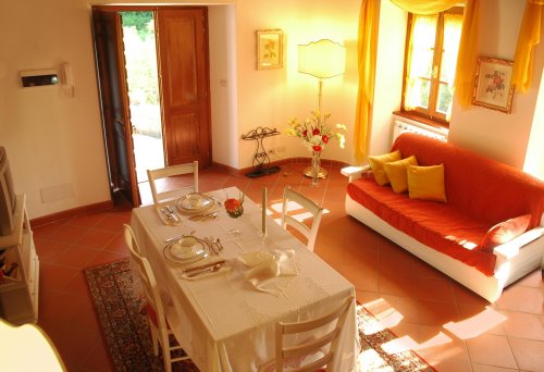 - appartamento per 4-6 persone di 110 mq con entrata indipendente, primo piano con grande soggiorno con caminetto e divano letto matrimoniale, ampia cucina attrezzata, 1 camera matrimoniale con bagno privato e doccia, 1 camera matrimoniale con bagno privato e vasca, ripostiglio. Vista prato e piscina.