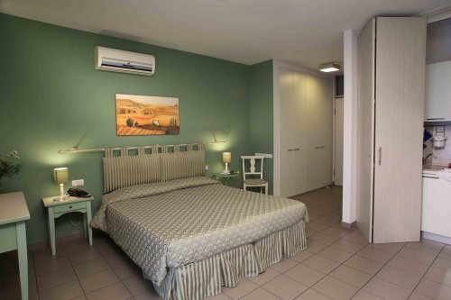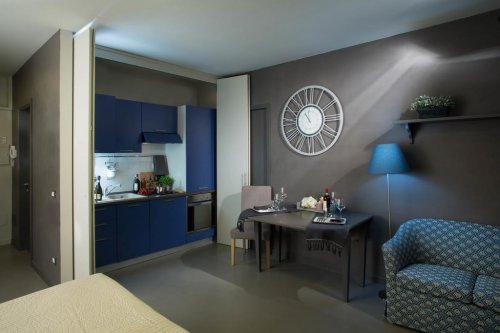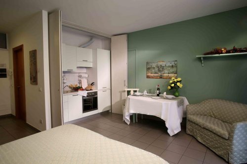 - Appartamento Classic per 1 persona, con ingresso indipendente e serratura elettronica, balcone privato attrezzato con tavolo e sedie, cucina con piano cottura, frigorifero, freezer, forno e lavastoviglie, cassaforte, telefono diretto con servizio sveglia, TV LCD satelittare, linea ADSL, bagno privato con doccia e set cortesia.