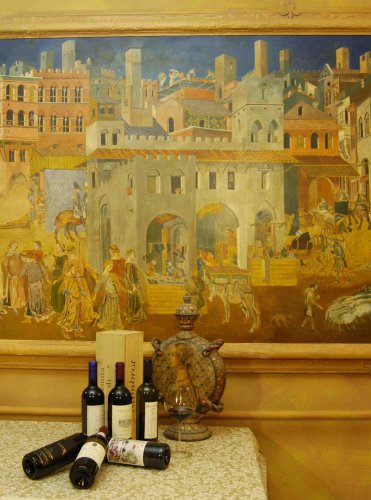 L'enoteca, posta nel sotterraneo, consente abbinamenti ottimali con i migliori vini della Toscana (notevoli alcune selezioni locali), d'Italia e del mondo.