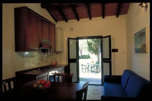 - Sughera: composto da camera matrimoniale o doppia, soggiorno con angolo cottura e divano letto, camino, TV color, riscaldamento autonomo e bagno privato con vasca.