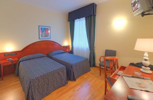 Le camere dell'albergo, arredate in un elegante stile classico, sono tutte insonorizzate e dotate di TV color satellitare 21', telefono, presa ethernet per collegamento ADSL gratuito a Internet, regolazione autonoma della temperatura, frigobar, bagno privato con asciugacapelli e set di cortesia.