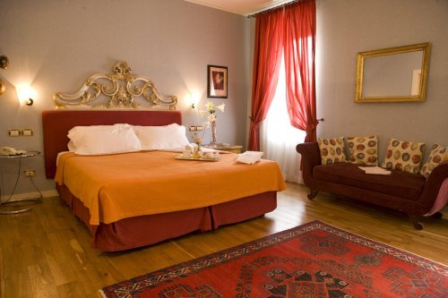 Le Suite sono molto ampie e arredata con mobili in stile, pregiati parquet, eleganti tappeti e tessuti preziosi e dotate di tutti i moderni comfort, bagno privato con vasca o doccia.