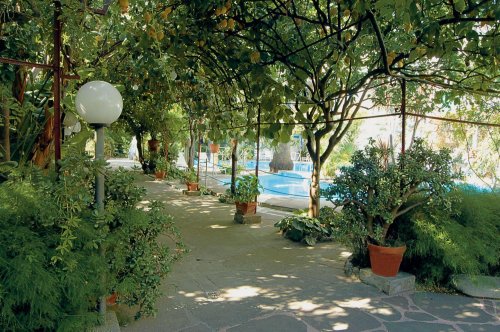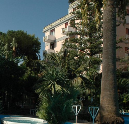 Immerso nel verde di un giardino mediterraneo, l'hotel si affaccia su una spiaggia privata di sabbia e ghiaia, attrezzata con ombrelloni, lettini, sdraio, spogliatoi, docce, bagni, Snack bar.