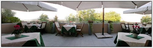 La splendida terrazza panoramica si presta alla realizzazione di pranzi e cene all'aria aperta, per deliziare contemporaneamente la vista e il palato.
