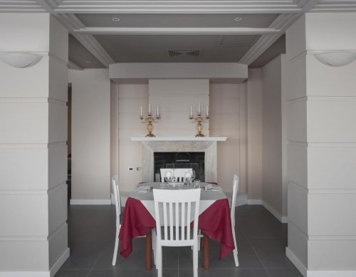 In un'ampia e luminosa sala da pranzo con caminetto, vengono servite le specialità della cucina locale insieme ai migliori piatti di alta cucina italiana.