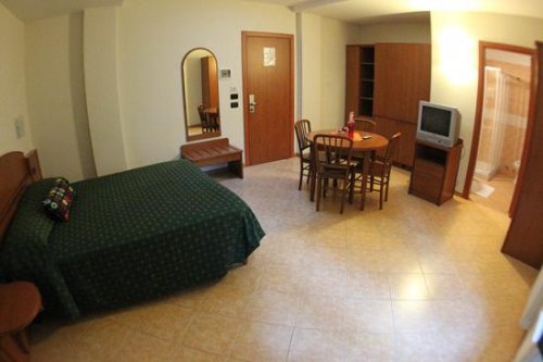 Il Residence Alle Scuole offre una calda ospitalità in confortevoli monolocali per 1, 2 o 3 persone, dotati di angolo cottura attrezzato, tavolo con sedie, TV color satellitare, frigobar, bagno privato, asciugacapelli.