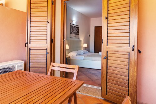 Il Bilocale 5 letti (30/45 mq) consta di soggiorno con angolo cottura, divano letto matrimoniale, pouf trasformabile in letto singolo, camera matrimoniale, bagno.