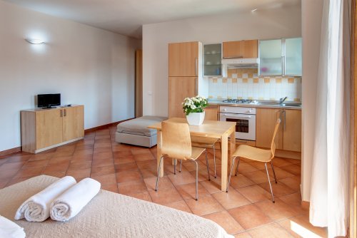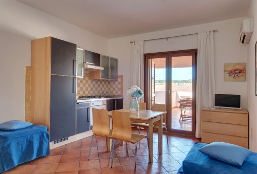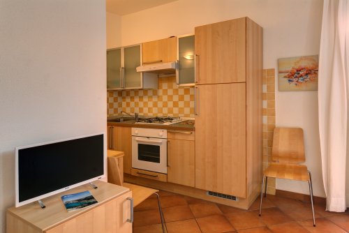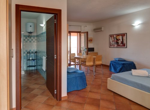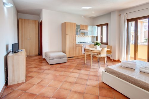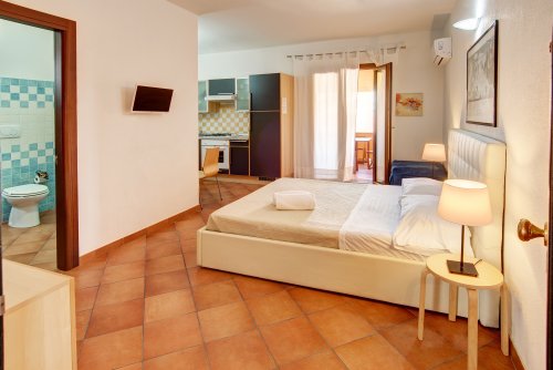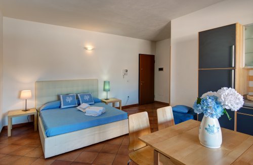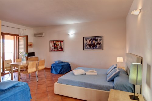 Il Monolocale 4 letti (25/30 mq) consta di soggiorno con angolo cottura, letto matrimoniale, divano letto doppio, bagno.