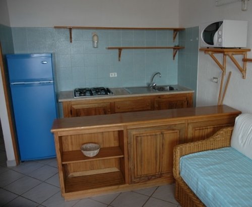 - Bilocale "Ibiscus" da 4 posti letto, con camera da letto matrimoniale, soggiorno arredato con 2 divani letto, angolo cottura attrezzato, forno a microonde, frigorifero e freezer, bagno privato, veranda con vista panoramica sul mare.