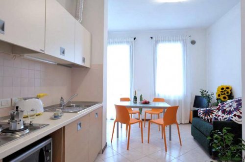 Bilocale: angolo cottura con tavolo, soggiorno con divano letto, camera da letto, servizi privati