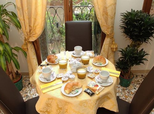 La ricca colazione viene servita nell'apposita sala, mentre in estate nell'ampio giardino.