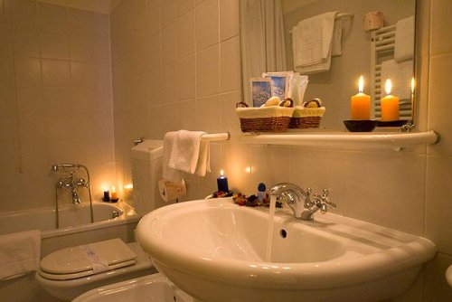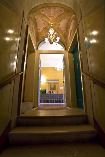 L'atmosfera suggestiva degli ambienti è sottolineata dagli alti soffitti affrescati, dalle raffinate tappezzerie e dalle pregiate rifiniture in marmo.