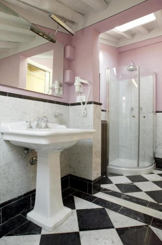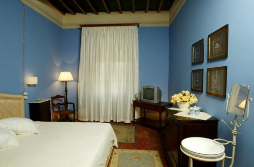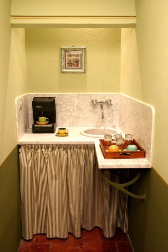 Le suite sono tutte arredate con mobili antichi e dispongono di soggiorno arredato con mobili d'epoca, telefono con linea diretta, TV color satellitare o via cavo, minibar, set per la preparazione di tè e caffè, letto a due piazze e aria condizionata o riscaldamento regolabile autonomamente, servizi privati con arredati in marmo policromo con doccia e asciugacapelli.
