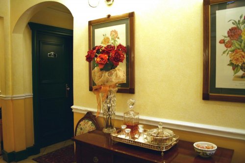 Gli ambienti sono arricchiti da tappeti fatti a mano, antiche stampe con scene di caccia e di golf, oppure decorazioni floreali (con rose) alle pareti e originali affreschi in trompe-l’oeil.