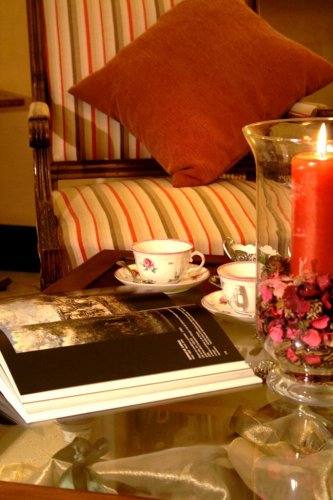 Presso la saletta lettura è sempre allestito un angolo del the con un caratteristico samovar e un'ampia selezione di tisane e infusi accompagnati da deliziosi pasticcini.