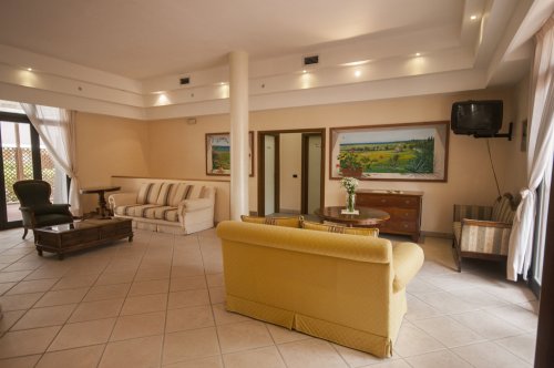 La struttura dispone di due Sale Ristorante: una interna dotata di climatizzazione ed una nella veranda esterna con vista piscina.