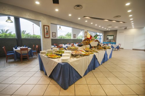 In entrambi i ristoranti vengono offerti menù a buffet con vasta scelta di antipasti, primi e secondi piatti sia di mare che di terra, preparati nel rispetto della tradizione mediterranea usando solo prodotti locali e di prima qualità.