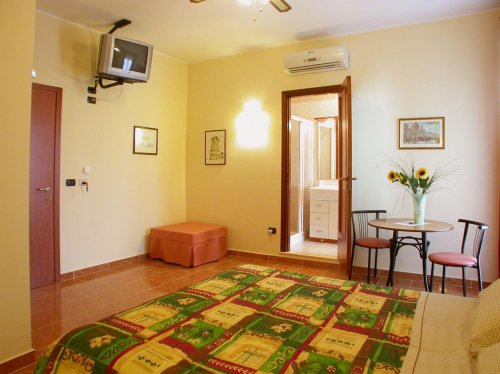 Mini appartamento: il miniappartamento rappresenta la soluzione ideale per chi intende usufruire dell’angolo cottura. Le varie tipologie di miniappartamento potranno ospitare al massimo 4/5 persone, in due camere separate, o in una camera più un divano letto nella zona giorno. Dispongono di bagno privato interno, TV color, aria condizionata.