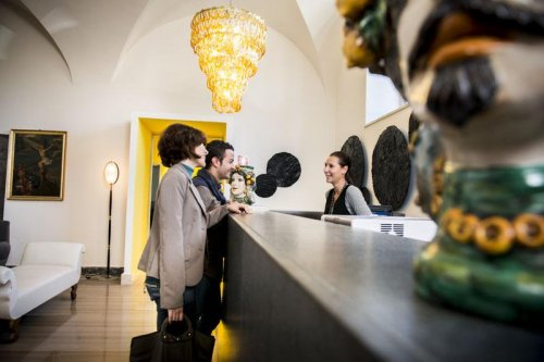 Alcune camere dispongono di un terrazzino privato con vista sul chiostro interno.