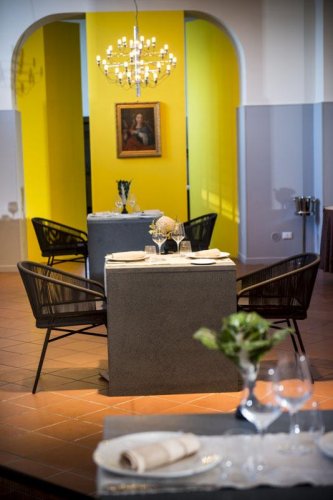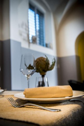 Il ristorante “Chiostro San Biagio” è in grado di ospitare 120 Ospiti e, con la bella stagione, offre la possibilità di cenare nei suggestivi spazi esterni vero e proprio fiore all’occhiello della casa, con un chiostro interno magistralmente affrescato, un parco con olivi ed agrumi.