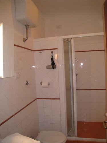 Si ricorda che le camere Singole dispongono di doccia e lavandino all'interno della camera; mentre il WC e il secondo lavandino sono all'esterno di fronte alla porta della camera.