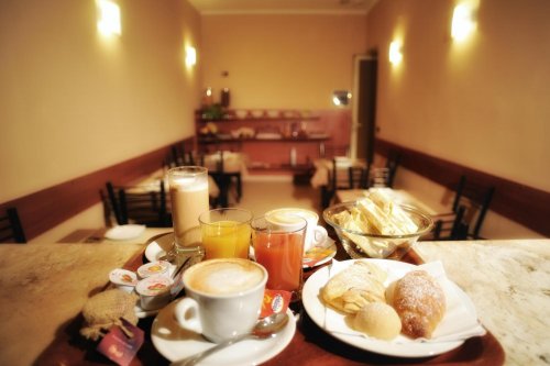 Nel bar dell'albergo viene servita ogni mattina dalle ore 7.30 alle 10.00 la prima colazione a buffet, con tipici dolci napoletani.