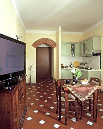 Gli appartamenti/Suite mantengono il tipico stile toscano, con travi a vista sul soffitto, zona giorno completa di cucina attrezzata, letto matrimoniale e divano letto completo di coperte e lenzuola, bagno privato rifinito in marmo.