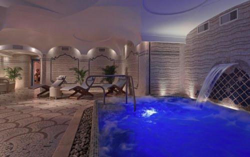 La struttura circondata da giardini mediterranei dispone di cinque piscine con idromassaggio di cui quattro termali, due coperte ed una d’acqua dolce, centro termale benessere & SPA con diversi tipi di trattamenti, palestra, connessione Wi-Fi a Internet ed un funzionale Internet point, un comodo parcheggio, una spiaggia alla quale si arriva attraverso un caratteristico sentiero riservato agli ospiti.